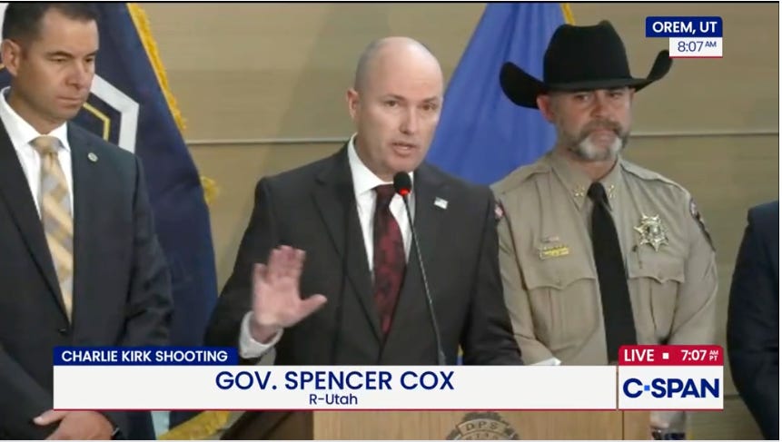 With American on edge, Utah Gov. Spencer Cox calls political violence 'an attack on the American epxeriment'