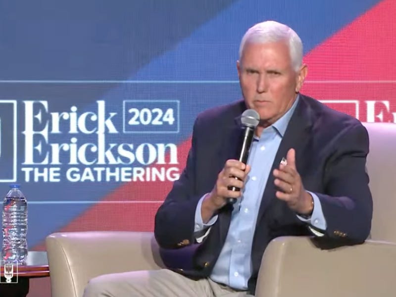 “I'm staying out of the presidential campaign for the reason that I just cannot, I cannot endorse this growing abandonment of our allies on the world stage that has taken hold in parts of our party. I cannot endorse ignoring our national debt that reached $35 trillion just in the last week. I cannot support marginalizing the right to life in our party, as we saw in the national platform,” Pence said. “And between me and my former running mate, I cannot endorse President Trump's continuing assertion that I should have set aside my oath to support and defend the Constitution and acted in a way that would have overturned the election in January of 2021.”