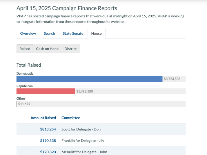 The 297 candidates for Virginia's House of Delegates have collectively raised $18.5 million in the first 15 months of the election cycle, according to new reports from the Virginia Public Access Project.